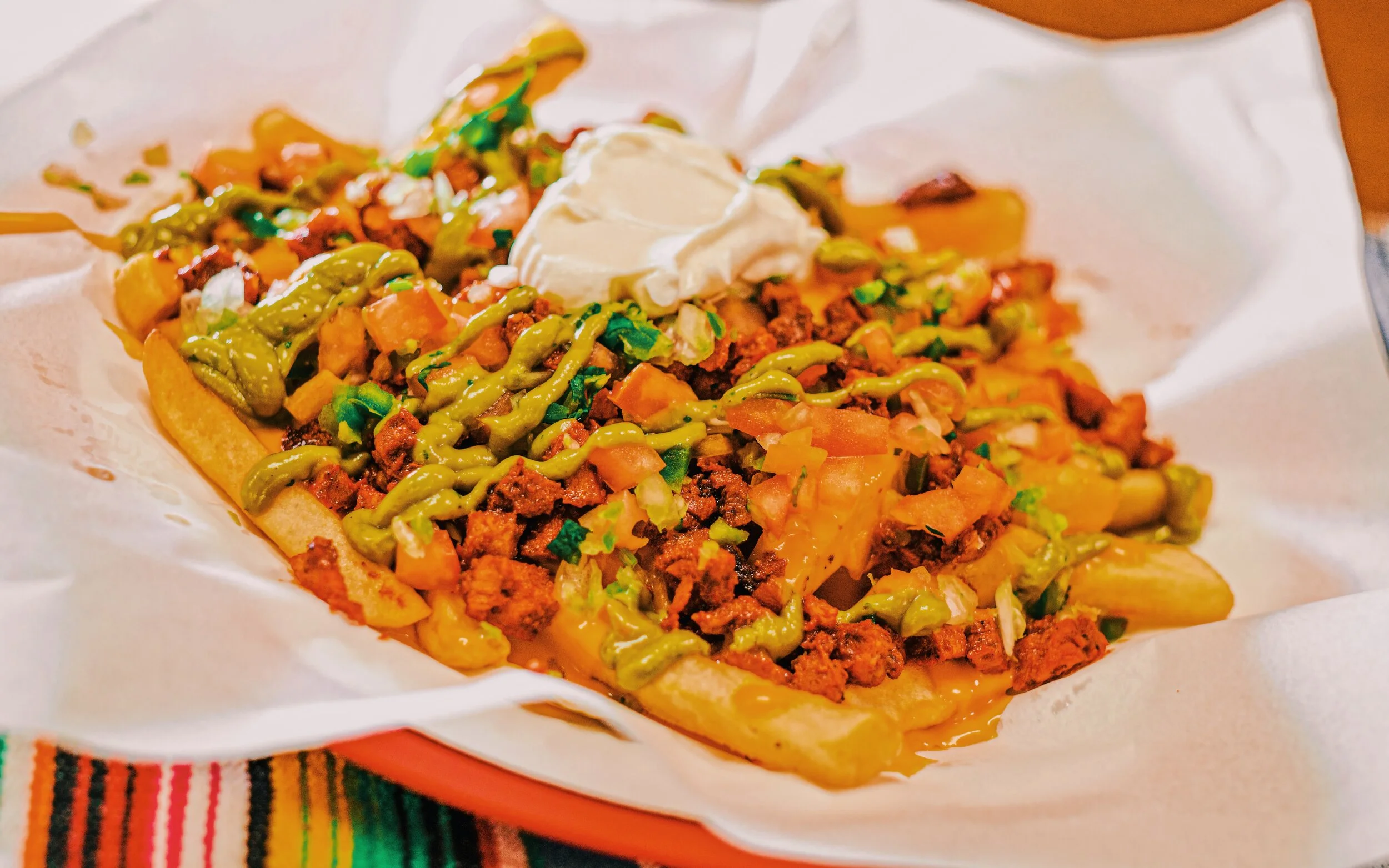 Satisfy your munchies with fries topped with your choice of meat, homemade crema, pico, and cheese.
